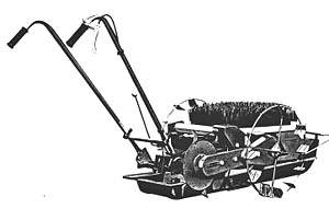 関口 正夫氏が発明した人力1条稚苗田植機。