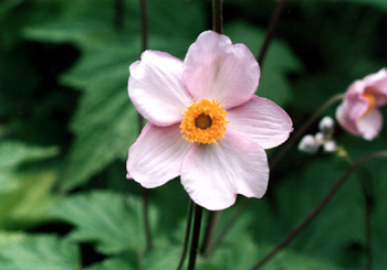 イチリンソウ、ニリンソウ、ハクサンイチゲなどがありますが、シュウメイギクは草丈が高いためか、他の種に比べてアネモネ属というイメージが薄いですね。 英名は「Japanese anemone」で、Japaneseと言われているにもかかわらず、実は中国の原産で、かなり古い時期に日本にもたらされ、自生したとのことです。 その自生したシュウメイギクを海外に紹介したのは、17世紀に日本に滞在していたドイツ人の博士です。 最初の交配種が作られたのは、イギリスであり、中国から導入したシュウメイギクとA.vitifoliaを交配したもので、現在日本でも販売されているのは、 この交配種が大半です。 |