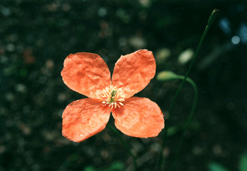 中央アジア原産で、高さ60cmになる多年草です。花の色は、通常赤ですが、写真のような橙色もあります。