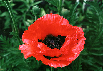 ブラクテアツム| コーカサス、小アジア原産で、100cmになる多年草です。花は10cmと大きめで、色は赤で基部に紫の斑点が入ります。 分類によっては、本種をP.orientaleに含ませることもあります。 |