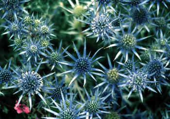 同じく青い総苞の種ですが、花は小輪で、地中海東部、スペインの原産で、高さが15〜45cmになる多年草です。 種名は、人名に因んでつけられたとのことです。