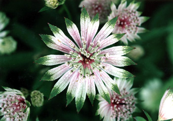 原種は、スペイン北部からロシアにかけて帯状に分布しています。高さ75cmで、総苞は先端が緑色で、白からピンク色へというグラデーションが美しい品種です。