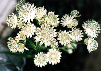 花は、白で少しピンクを帯びます。写真の園芸品種は、高さ30〜60cmで、花の大きさは4cmです。