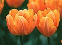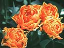 この花は、ご覧のとおりオレンジ色のチューリップです。一般的にはチューリップはあまり香りがないのですが、 この色の品種はオレンジそっくりの甘い香りがします。球根会社のカタログにはFRAGRANTという大きな文字で宣伝文句が書かれています |