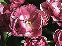 八重咲きは花だけ見るとシャクヤクのようですが、これもれっきとしたチューリップです。 雄しべが花弁に変化してこんなに花弁が多くなりました。 チューリップはシンプルが売り物なのに、八重咲きなんてチューリップらしくないといわれるかもしれませんが、私には、 チューリップ自らが作った芸術品のように思われます。八重のチューリップを30本ほど白い陶器の花瓶に入れたらさぞかし豪華でしょうね。 |