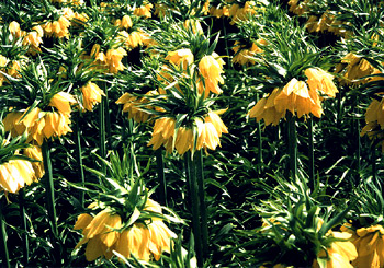 前に紹介しました花の黄色のタイプで、英名もyellow crown imperialです。100cm程度の品種です。