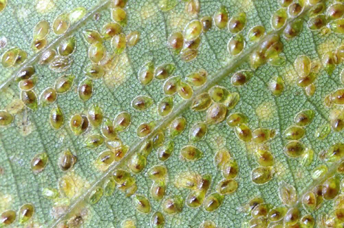 寄主植物:シイ、マテバシイ 成虫越冬。4〜5月に産卵する。成虫の体長は2mm弱。年間世代数は不明。多発すると被害は大きい。 なお、この種は体表が一見ガラス状で、フサカイガラムシ科に属するが、外見はカタカイガラムシ類に似ているので、このグループに入れている。 |