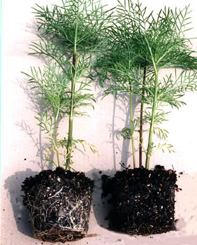 スピンアウトトレー(左株)とポット(右株)へのさし芽苗
