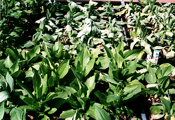 ガザニヤ苗の生育状況(左の鉢がサーモゲル入り、生育の差が歴然)