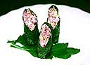 | のり巻きにし、ななめに切ると美しく、 ソバつゆや甘酢をつけて食べるとおいしい。 |