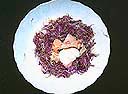 お湯に食酢を何滴か入れると 色鮮やかに仕上がります。 |