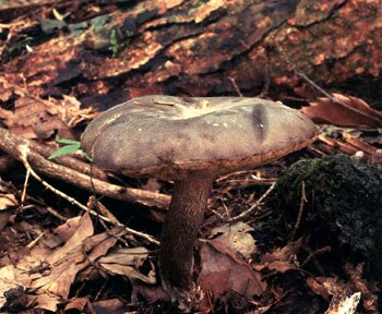 | [特 徴] 傘は初め半球形で後には開いてほぼ平らになり、表面の色は灰黒色で、やや光沢がありなめし革状。管孔は柄に直生からやや上生し初め淡褐色で後には汚黄色、 汚灰褐色になる。柄は、傘とほぼ同色で、表面には網目模様がある。 |
