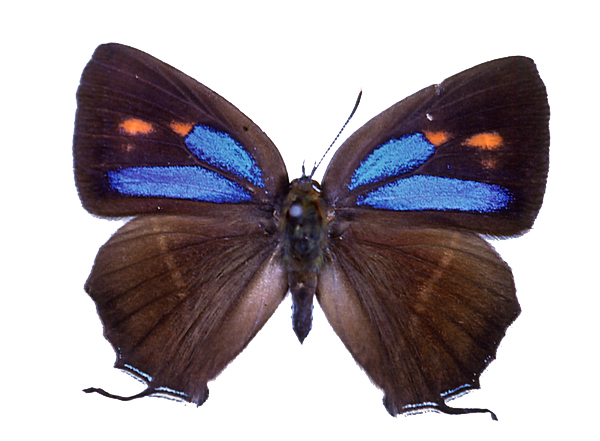 | ホーム > 読み物コーナー > 世界の珍奇・美麗昆虫 > モルフォチョウなどその他チョウとガの仲間 > ヒサマツミドリシジミ(雌) |
