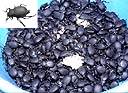 雲南省の薬用昆虫「臭売虫(オサムシモドキの一種)」 (昆明市内花鳥市場、1996年11月、白く見えるのは餌に与えた飯粒) |