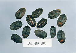 ただし、『本草綱目』に登載されている九香虫の記載では、「河中に産する小指の先程の大きさで、水亀に似た青黒色の虫。冬期には石下に蟄伏する」とある。この正体は不明だが、