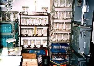 正木さんは冒頭で「ぼくがしてきたのは実験ではなく、単調な作業にすぎないからアホウにしか続けられない。ただ、“継続は力なり”というから、三段論法を適用すれば、 “アホウは力なり”ということになる」といって笑わせた。が、当初の試験設計を変更することなく長期継続することは、よほど理論構成が確立され、 強固な意志と情熱がなければできることではない。分析機器の急速な進歩もあって短期決着型の研究が急増し、実用志向型の研究ばかりが歓迎されている今こそ“アホウ”の意義は大きい。 なにしろ、わずか数百万年の歴史のヒトが、億年単位で数える生物を相手にしているのである。 ちなみに、正木さんは世界的に知られる昆虫研究者である。主としてコオロギ類の休眠現象を主題に、昆虫の気候適応と分化の問題に取り組み、大学を定年退職したのちも自宅にエアコン室を作り、 膨大な個体数のコオロギを飼い続けている。「自然界での進化に比べてこの仕事の何と短いことか。余命を考えるとあと何年データが取れるだろうか」といいながら、 古希を越え、手伝う学生もいない今も、彼は毎日コオロギに囲まれてひたすら“アホウ”のように研究を続けているはずである。 |