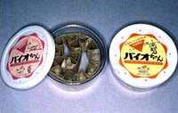 ただ、小型なのが難点であったが、これもさるメーカーが特殊なホルモン操作によって体長も体重もほぼ「本家ブドウ虫」に匹敵させることに成功し、 大々的な生産が行われつつある。また、このホルモン操作は、幼虫がサナギになることも抑制し、エサとして長く使えるとともに、逃げ出したものが増えて養蜂家に迷惑をかけることも防いでいる。 虫を変えるバイオ技術は、実に釣りのエサにまで及んでいる昨今なのである。 朝日新聞夕刊「変わる虫たち」,(1989.4.19) |