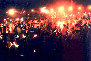 いつもさして混んでいない民族村も、この夜だけは観光客でごったがえし、イ族以外の少数民族まで各所でそれぞれ付和雷同型?の火祭りのまっ最中であった。