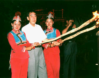 最後はわら人形を海や川に流して害虫の退散を願うのが一般的である。これは観光行事に変化しつつも現在なお各地に継承されている。 話し変わって中国は少数民族の故郷の雲南省。ぼくは仕事でここ数年毎年この地を訪れているが、今年の8月、ここで人口660万人を擁するイ(彝)族の火祭りを見た。 彼らには古来旧暦の6月25日から3日間、盛大な火祭り(火把節)を行う伝統があり、ぼくの訪問はたまたまその時期に当たった。 昆明市内にある観光用の「民族村」で夕方から夜半に開催と聞き、ぼくも早速見物に出向いた。 |