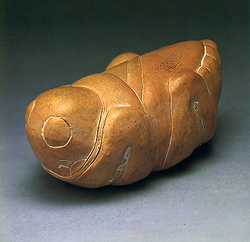 書誌学者の小西正泰氏に最後の1個を買い取られた後であった。体長21cm、中空で細部も実物とは異なるものの、重量感のある作品である。