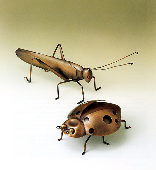 帰国後ぼくに贈られた感謝のオブジェである。銅製でこのほか、カット写真(写真・右下)の大型の蚊を含めての3点セット。いずれも腹面中央にネジ穴があり、長さ60cmの銅の棒が取り付けられるようになっている。
