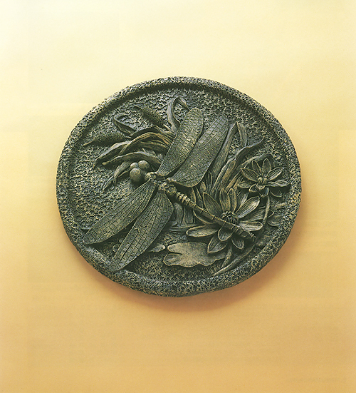 セラミック製で化粧箱入り。大きさはすべて直径30cm内外、厚さ3cm、重量約2kg。驚くのは1個480円という安価さである。加えてガーデニングブームと日本人好みのトンボであることもあり、