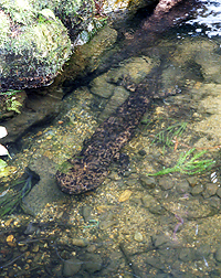 オオサンショウウオ科の日本固有種で、世界最大の両生類。スイスで発見された3千万年前の化石と今の姿がほとんど変わっていない「生きた化石」。