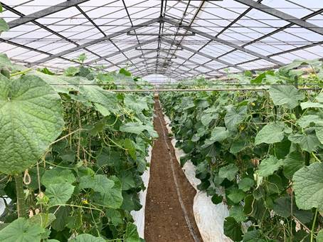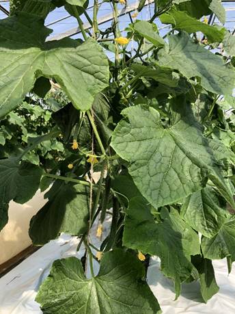 ハウスで生育しているキュウリ