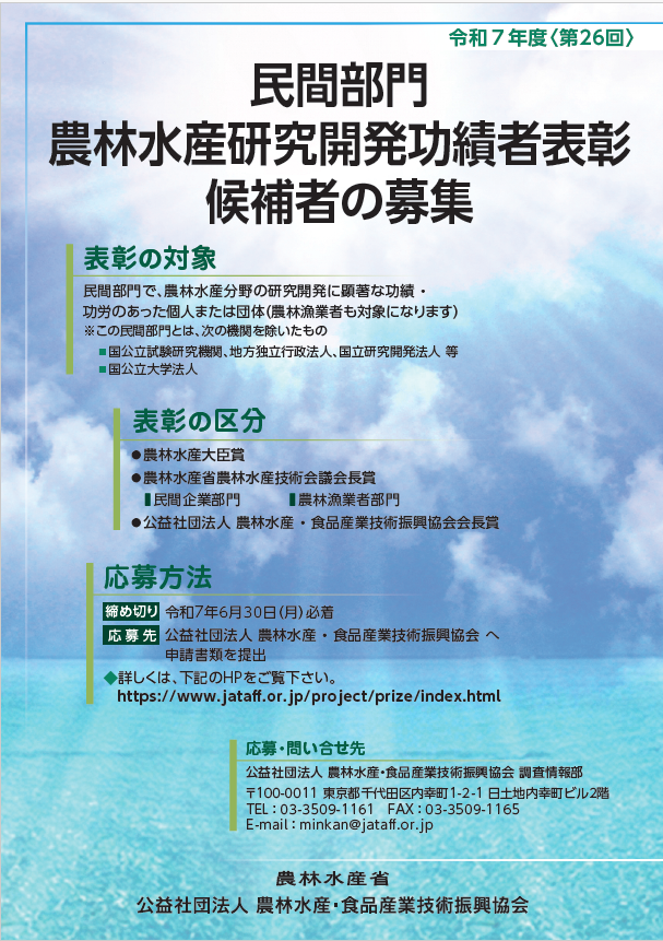 令和7年度(第26回)「民間部門農林水産研究開発功績者表彰」受賞者の決定及び表彰式の開催について