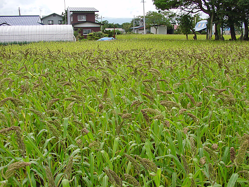 ![]() 栽培ヒエ・駒 ![]() 食用ヒエ(奥)と稲(手前) |
