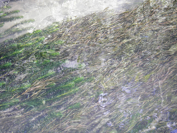 ![]() 流れに揺れるササバモ ![]() 葉の拡大 |