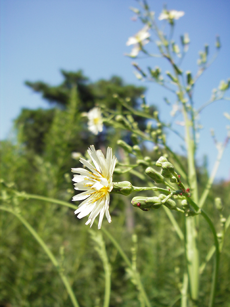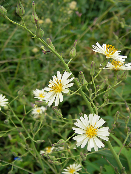 キク科の植物にしては大型である。春咲くノゲシより白っぽい花であり、一つ一つの花はきれい。いわゆるレタス(Lactuca sativa)の仲間で、