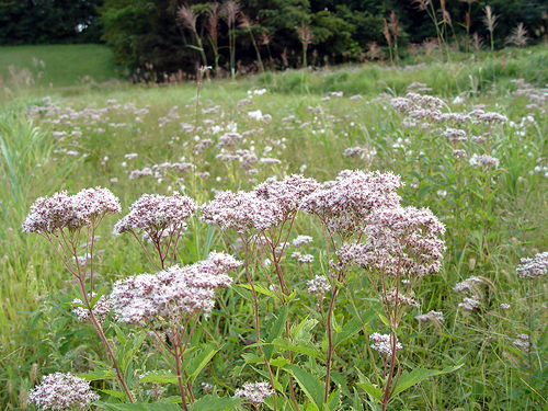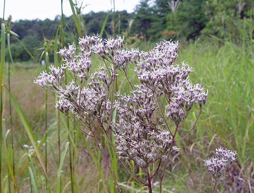 大型の湿地性多年生草本。道路脇に生えるヒヨドリバナ(Eupatorium chinense)に似ているが、本種は耕作放棄田などの湿地に生え、