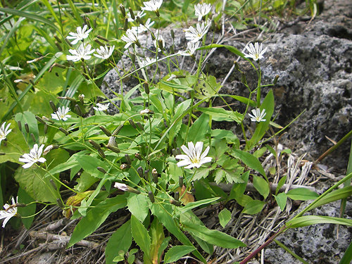 山に登り始める登山道の脇には決まってニガナ類が生えている。生育域は比較的広い。黄色の花がニガナ(ハナニガナ)、