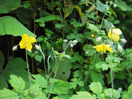 のように茎を折ると橙黄色の汁液が出る。ケリドリン、プロトピン、 ケレリトリンなどのアルカロイドでタケニグサより強い毒性がある。イボがとれるほど強いようだ。里山に黄色のきれいな花の咲く植物だが、 ケシ科の植物は恐ろしい。