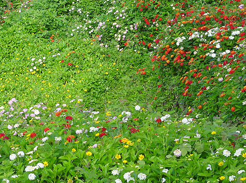 花はきれいだが日当たりの良いところならどんどん繁殖する。花は次々と咲いて、次第に色濃くなっていくので1つの株で様々な色の花が咲いていることになるので「七変化」というようだ。