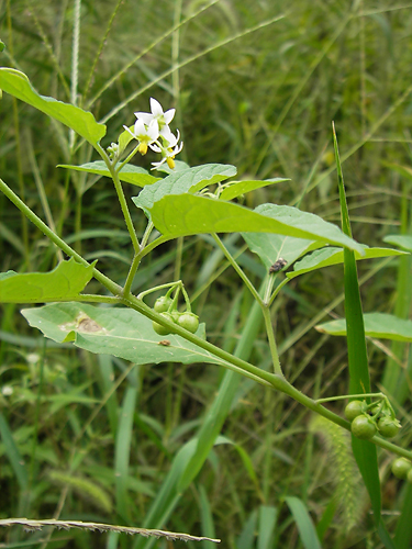 古くから入っている一年生の帰化植物である。薬草、毒草のたぐいで、黒くなった実はつぶれると大豆の汚粒の原因となる。
