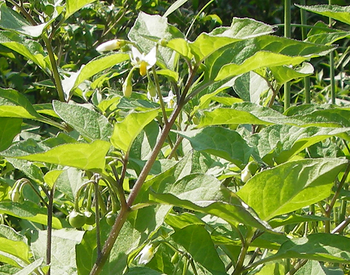 最近はテリミノイヌホオズキや花弁が反り返らないアメリカイヌホオズキ(Solanum americanum)などいろいろなイヌホオズキが生えていて、よく分からない。
