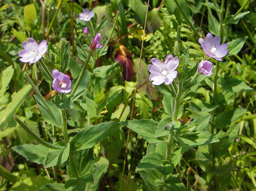 アカバナ科の花にはマツヨイグサ属であるオオマツヨイグサ、メマツヨイグサ(Oenothera biennis)などよく知られた帰化植物の花が多い。 きれいどころでは、高原湿地で群生しているヤナギラン(Epilobium angustifolium)はアカバナに近い。アカバナとヤナギランは大切にしたい。 |