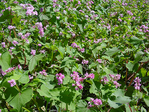 それぞれの地域にあった品種を栽培したい。近年、ルチンの含量が多いダッタンソバ(Fagopyrum tataricum)の栽培も見られるようになった。
