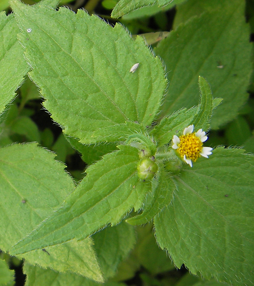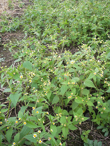 熱帯アメリカ原産の一年生の帰化植物。夏場に(本当は5月頃から10月まで)直径5mmほどの小さな頭花を咲かせる。