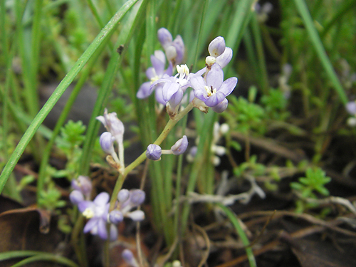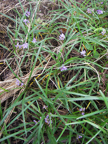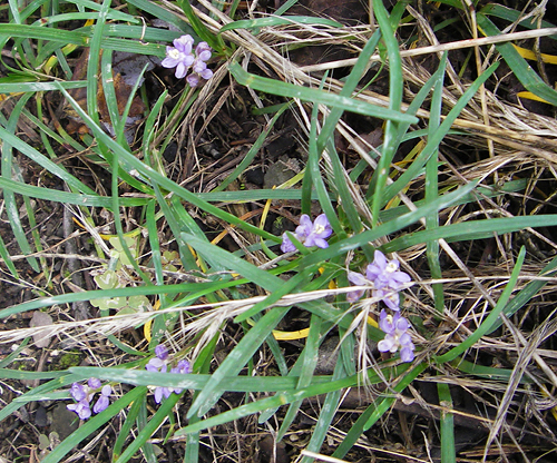 生け垣の下など家の回りに多い多年生植物。斜面の土壌流亡を押さえるために植えられたものであろう。7月に目立たない花が株元につく。