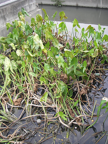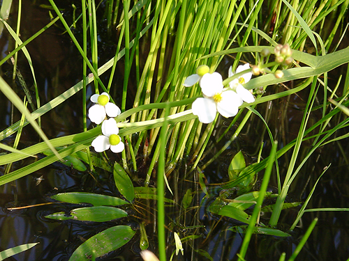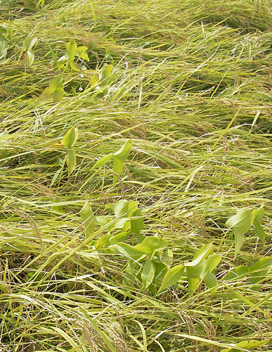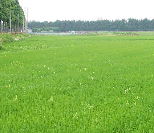 ![]() オモダカが混在する水田 ![]() 雄花と雌花 |
