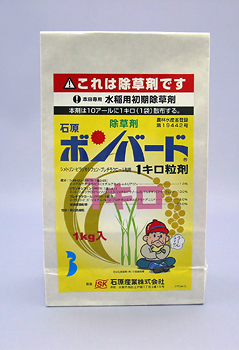 ノビエ、コナギ等の一年生雑草およびホタルイ、ウリカワ、ミズガヤツリ等の多年生雑草、藻類や表層はく離に安定した除草効果を発揮する初期剤で、適期処理により20〜30日の残効が期待できます。