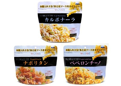 製造日より5年の保存ができるので、非常食として最適です。(ただし、ナポリタンは製造日より2年です。)