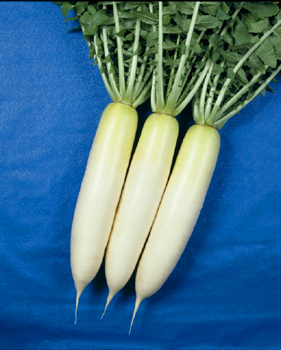 早太りで、ス入りの遅い良質な青首ダイコンの代表品種。尻の肉付きがよく、早くから形が整うので、若どりもできて、適期まで置けば均整のとれた総太り型となり、揃いはよい。肌は白くて青首が美しく、肉質もよい。市場出荷から家庭菜園まで幅広く栽培できる。