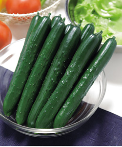 ●歯切れのよい果肉。平均果長は21〜22cm、果実は濃緑でツヤがあり、歯切れがよく、食味にすぐれる。