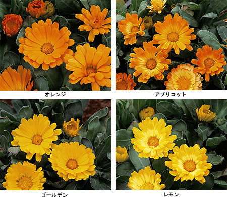 金盞花 「デイジ-系」4色(オレンジ、アプリコット、ゴ-ルデン、レモン)