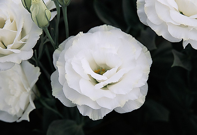 純白大輪八重で花弁数が多く、開花は「雪てまり」よりやや早いのも特長です。