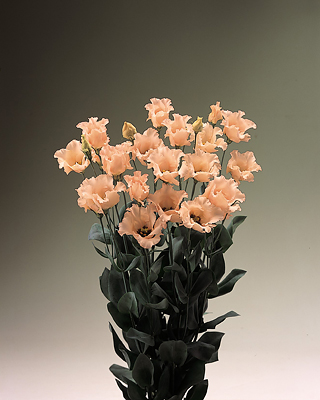 淡いアプリコット色で濁りのない澄んだパステル調の花色で、芯はブラウンで上品さがあります。蛍光灯下でも非常に引き立つ色合いです。